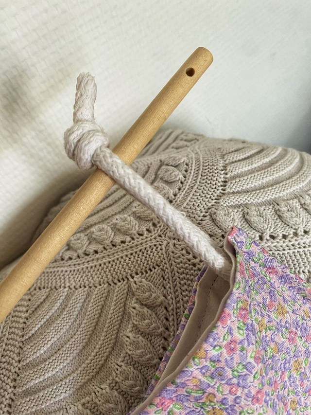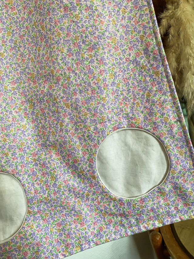 Ce sac à foin a été réalisé avec un tissu de seconde main (drap vintage) soigneusement sélectionné.